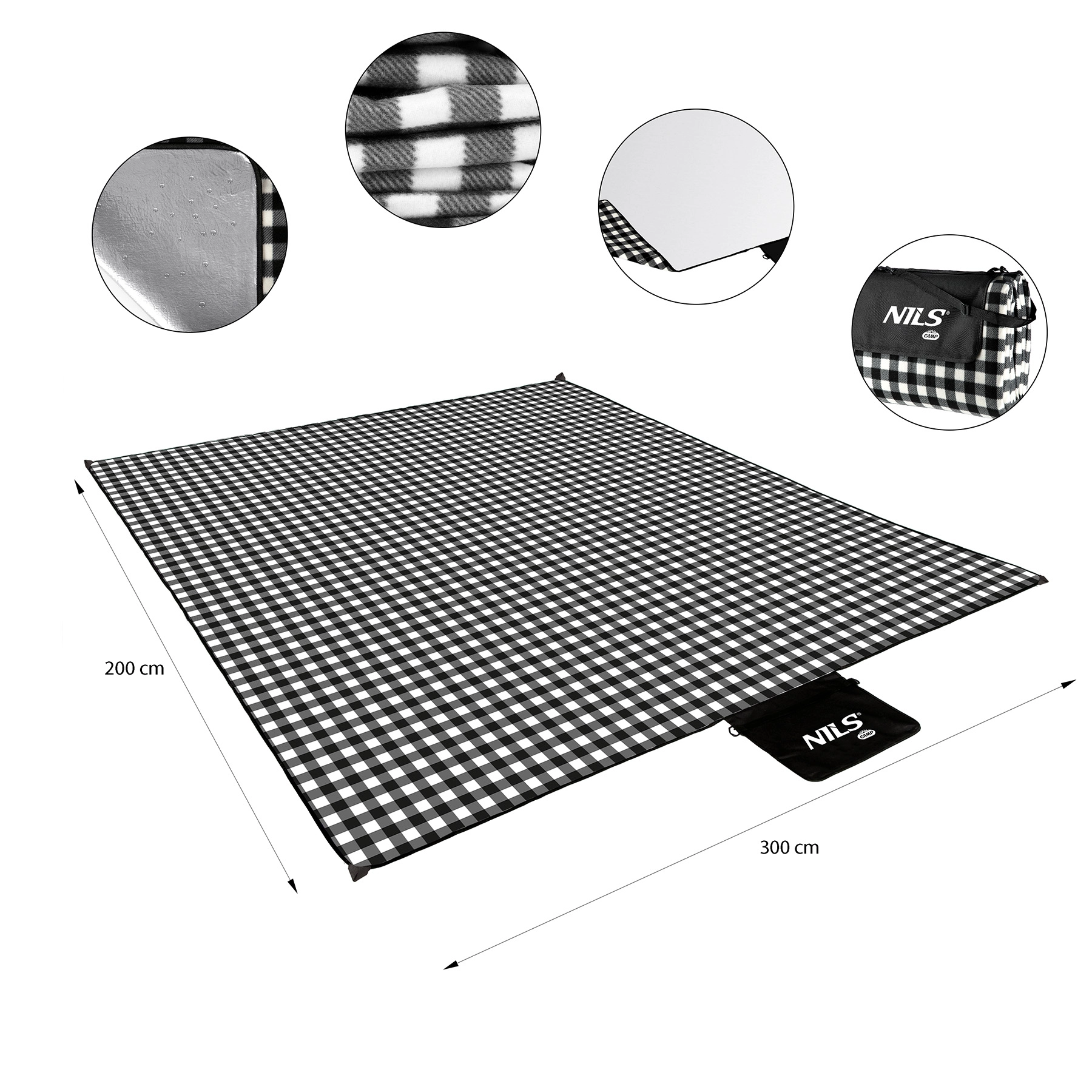 Užijte si komfort na každém výletu. Tato prostorná pikniková deka NILS CAMP poskytne pohodlí celé rodině – měkký fleece je příjemný na dotek a velkorysý rozměr 200 × 300 cm zajistí dostatek místa pro sezení i servírování. Elegantní černo‑bílý vzor se hodí do parku, na pláž i do kempu.