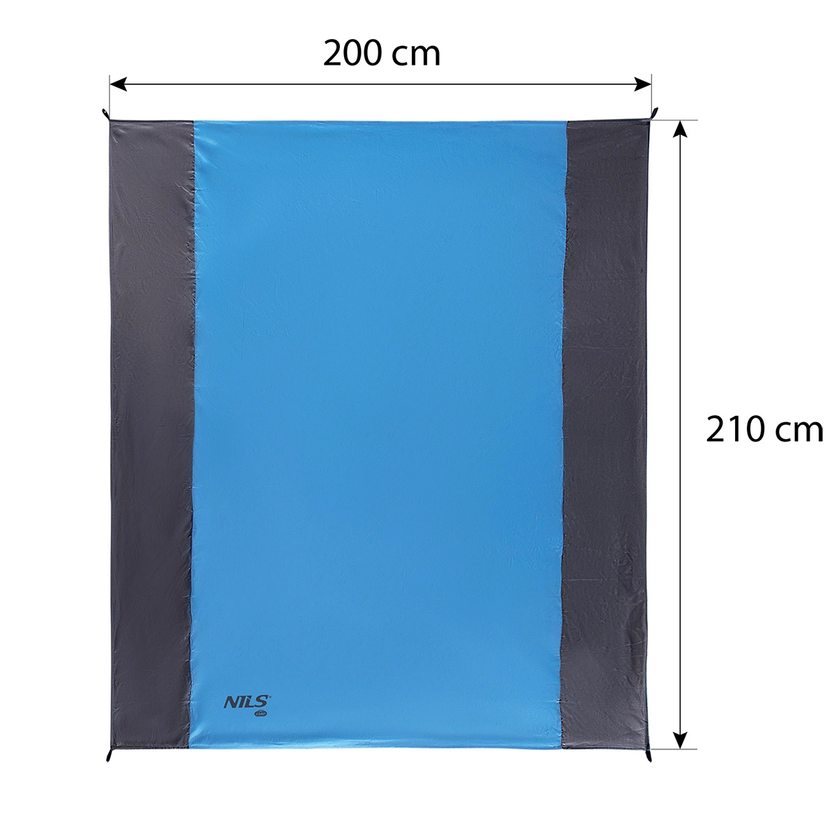 Ripstop tkanina z nylonu 210T je navržena tak, aby omezila šíření trhlin a zajistila dlouhou životnost. Materiál je odolný vůči stříkající vodě, takže podložku můžete bez obav rozložit i na vlhkou trávu nebo písek. Praktické rohové oka umožní fixaci přiloženými kolíky a zamezí shrnování.