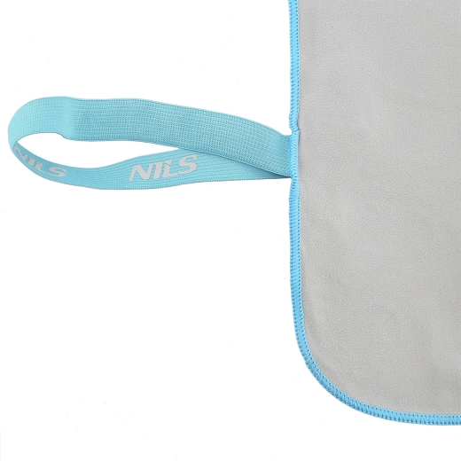 Po srolování ručník zafixujete páskem s logem NILS. Šetří místo v batohu a zůstává úhledně zabalen.