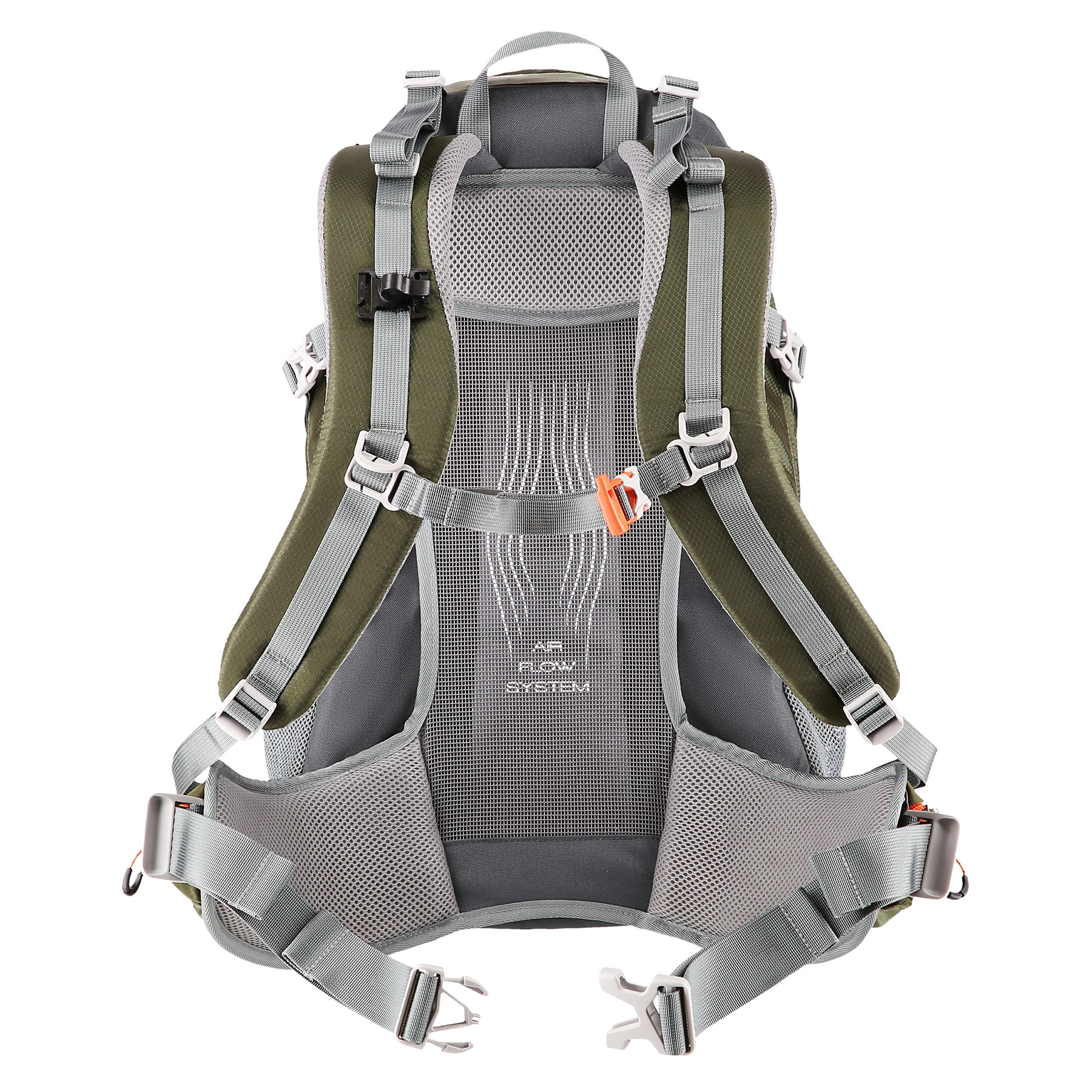 Ventilovaný zádový panel a polstrované ramenní popruhy s nastavitelným hrudním řemínkem a bederním pásem zajišťují pohodlí, odvod tepla a jisté usazení batohu i v náročném terénu.