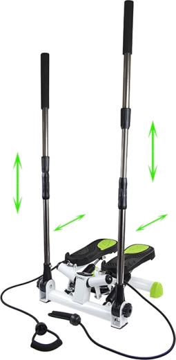 Dvě svislá madla s pěnovými úchopy a regulací 102–138 cm zvyšují jistotu při cvičení, zlepšují držení těla a pomáhají udržet správnou techniku kroků.