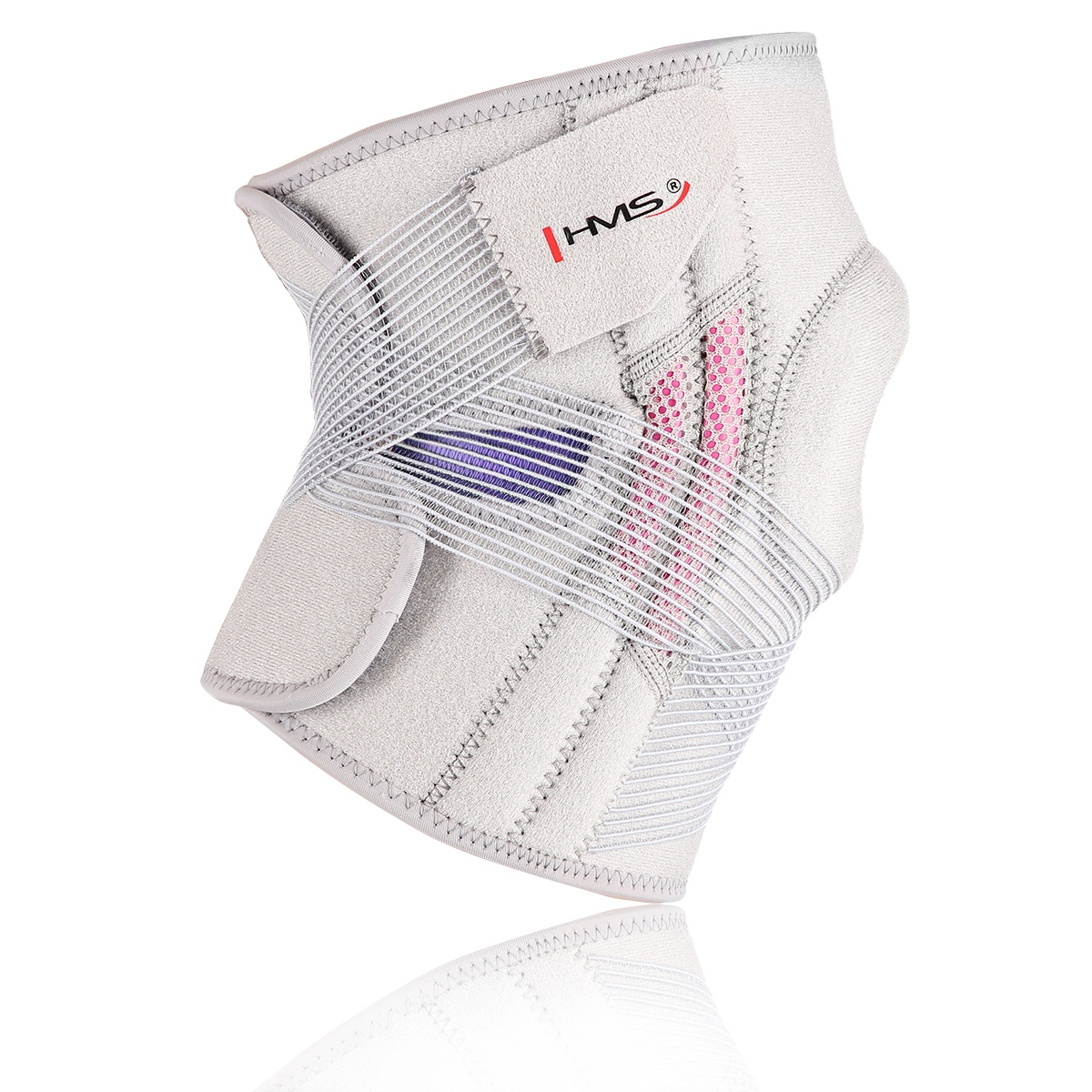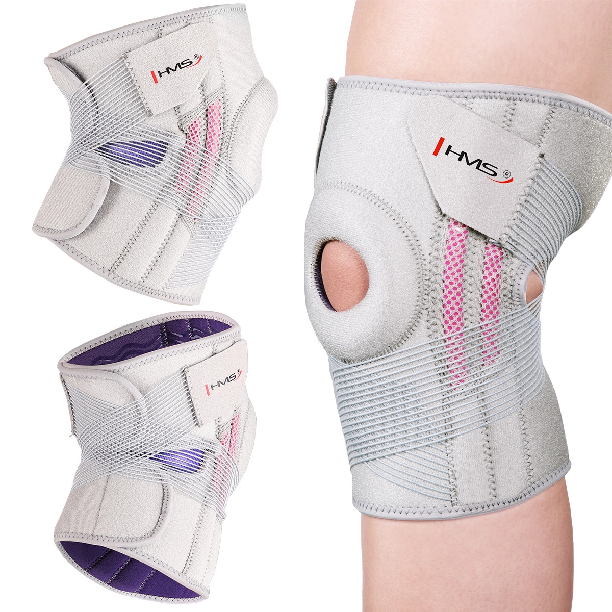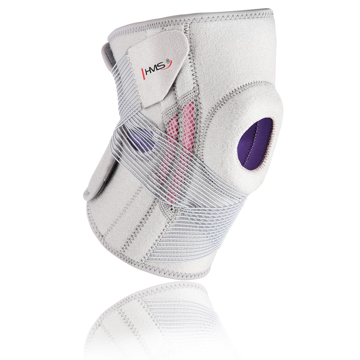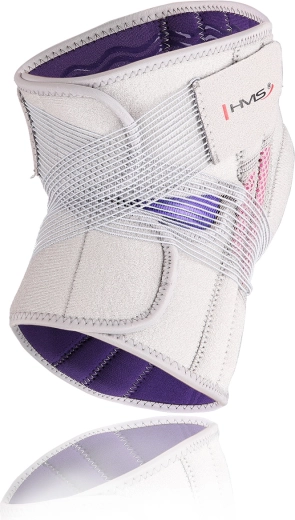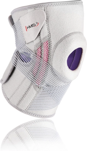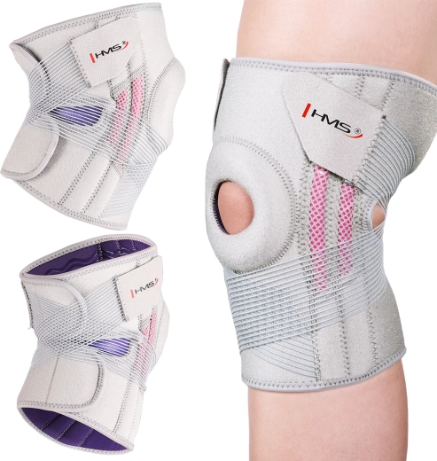 Lehká a pohodlná kolenní bandáž HMS ve světle šedé barvě poskytuje spolehlivou stabilizaci kolene a cílenou kompresi kolem čéšky. Díky nastavitelným suchým zipům a elastickým páskům se skvěle přizpůsobí, je prodyšná a vhodná pro celodenní nošení i sport bez omezení pohybu.