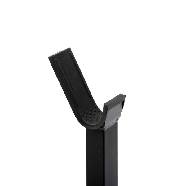 Háky s hrubou protiskluzovou gumou chrání činku i konstrukci před poškrábáním a zajišťují tiché a jisté odkládání.