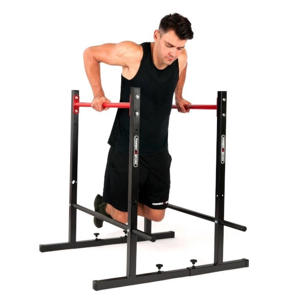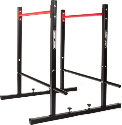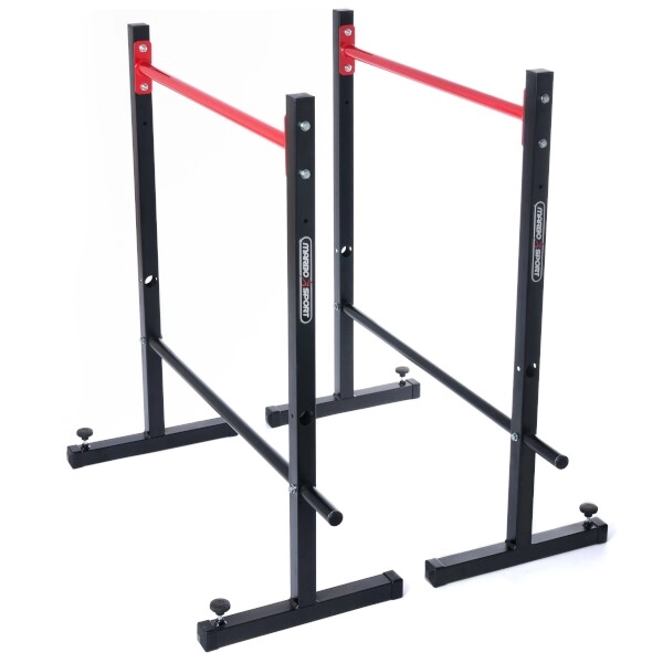 MARBO MH-D212 jsou praktičtí parťáci pro domácí posilovnu. Díky stabilní ocelové konstrukci a široké základně zaručují pevnou oporu při náročných cvicích, zatímco nezávislé stojany umožňují přizpůsobit šířku i výšku přesně vaší postavě a tréninkovým cílům. Využijete je pro dipy, klikování na bradlech, přítahy nohou, podporové držení i variace kalisteniky.
