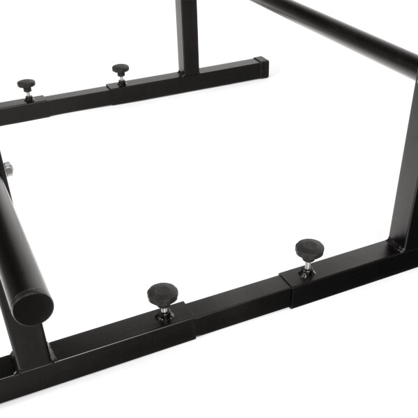 Montáž je rychlá díky jednoduchému 2×4 šroubovému systému, takže během chvilky cvičíte. Nosnost 200 kg poskytuje bezpečnou rezervu i pro pokročilé sportovce, zatímco nastavitelné horní i spodní příčky rozšiřují možnosti tréninku o různé úrovně obtížnosti a úchopů.