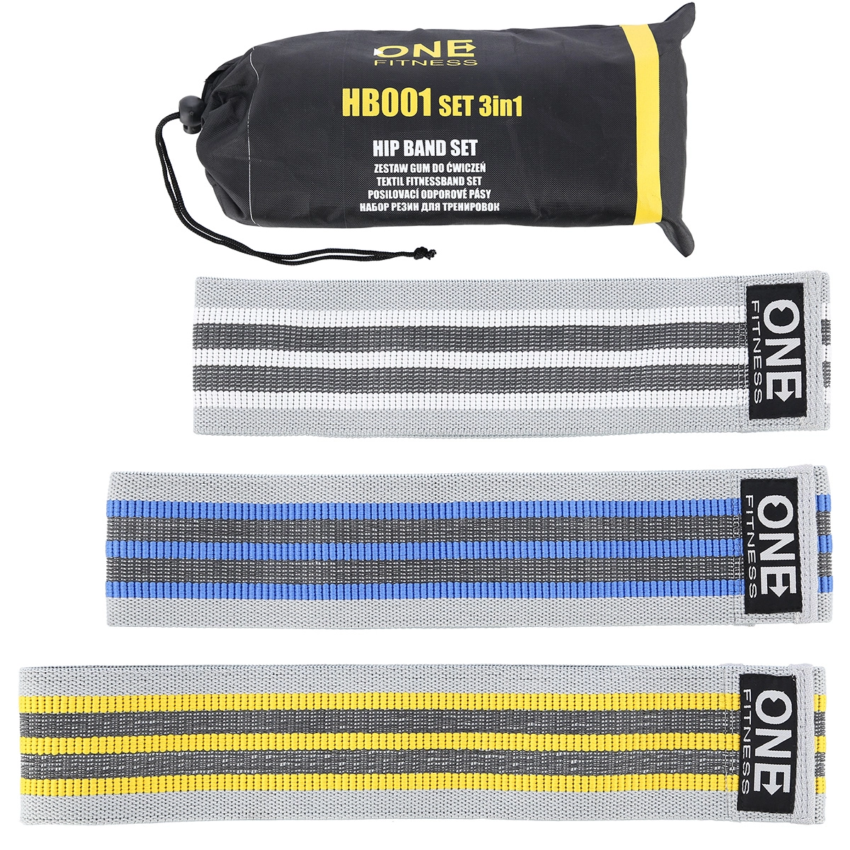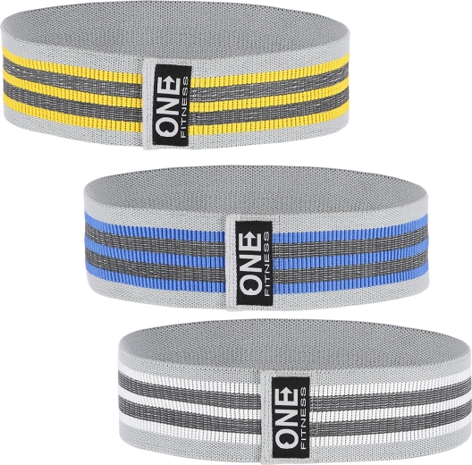 Sada Hip Bandů ONE Fitness 3v1 je nepostradatelná pomůcka pro aktivaci a zpevnění hýžďových svalů, stehen i kyčlí. Textilní provedení s příměsí latexové příze zajišťuje vysokou odolnost vůči roztržení, příjemný kontakt s pokožkou a neklouzavý úchop na oblečení. Tři šířkou stejné, ale různě tuhé gumy umožní postupnou progresi i přesné zacílení cviků.