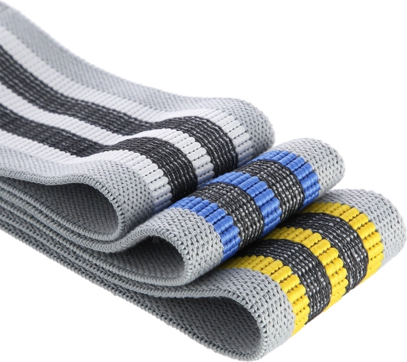 Pevná tkanina z polyesterové bavlny s latexovou přízí je příjemná na dotek, nekroutí se a odolává roztržení lépe než běžné gumové pásy.