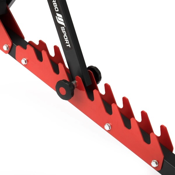 Praktické detaily jako gumové stabilizátory pro ochranu podlahy a rychlé nastavení úhlů dělají z této lavice spolehlivý základ domácí posilovny.
