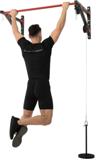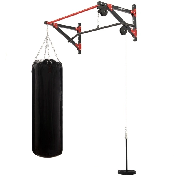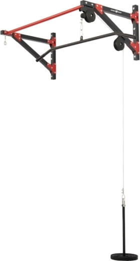 Kladkový systém je osazen ocelovým lankem s karabinami na obou koncích. Zátěž se nakládá na trn o průměru 22 mm a délce 46 cm, což umožňuje použití běžných kotoučů. Součástí je také široký adaptér 120 cm s pohodlnými gumovými gripy pro přítahy shora a další tahové cviky. Oko pro zavěšení pytle je umístěno 69 cm od zdi a hrazda je odsazena od stěny 69 cm pro dostatek prostoru při cvičení.