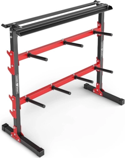 - Maximální organizace prostoru – činky, kotouče i osy na jednom místě