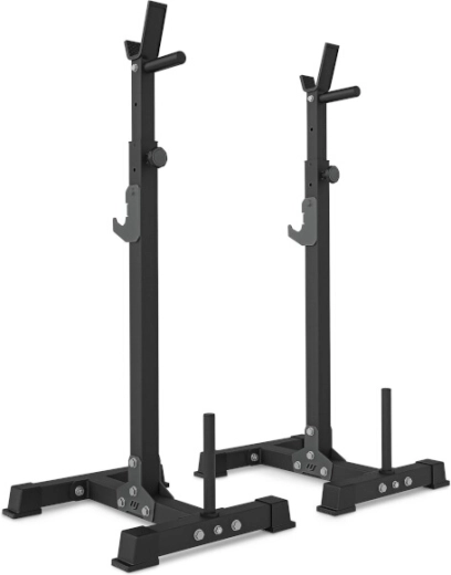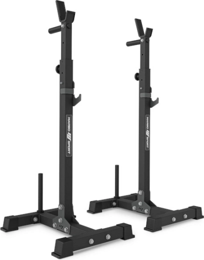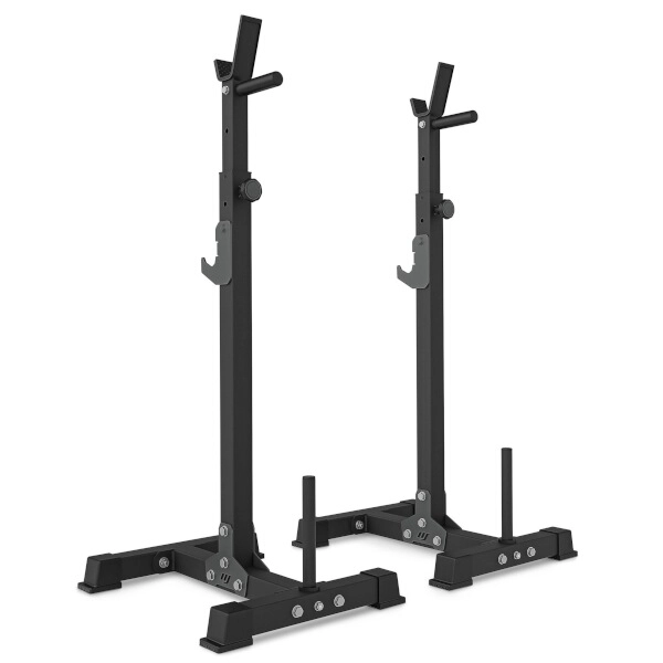 Stojany MARBO MS-S108 2.0 jsou precizně vyrobené na CNC strojích z pevných ocelových profilů 50 × 50 × 2 mm. Nabízejí plynulé a jisté nastavení výšky po 5 cm krocích (13 pozic) a díky široké základně 54 × 45 cm s možností dodatečného zatížení kotouči vynikají skvělou stabilitou. Ideální pro domácí trénink dřepů, bench pressu i tlaků vestoje.