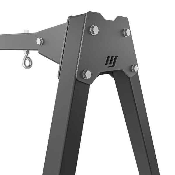 Dvě pevná oka s roztečí 70 cm umožňují snadné zavěšení houpačky, hnízda, křesla nebo tréninkových doplňků a jejich rychlou výměnu.