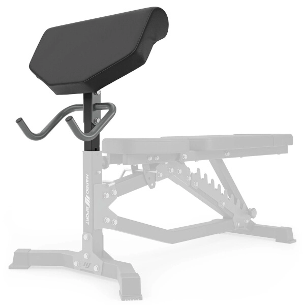 MARBO MS-A101 2.0 rozšíří vaši posilovací lavici o modlitebník pro přesné a bezpečné izolované cviky na biceps a triceps. Robustní konstrukce z ocelového profilu, silná deska a hustá pěna s odolným potahem zaručují komfort i při náročných trénincích.