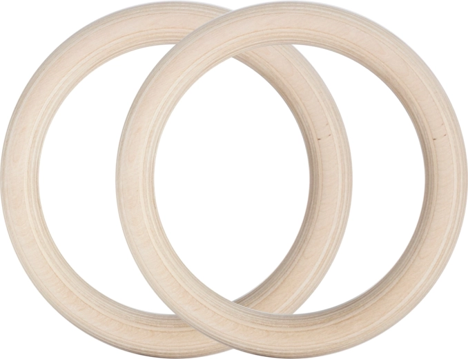 Kruhy z vybraného dřeva jsou hladké, odolné a příjemné do ruky. Průměr 23 cm a tloušťka 28 mm podporují stabilitu a techniku při shycích, dipech i přítazích.