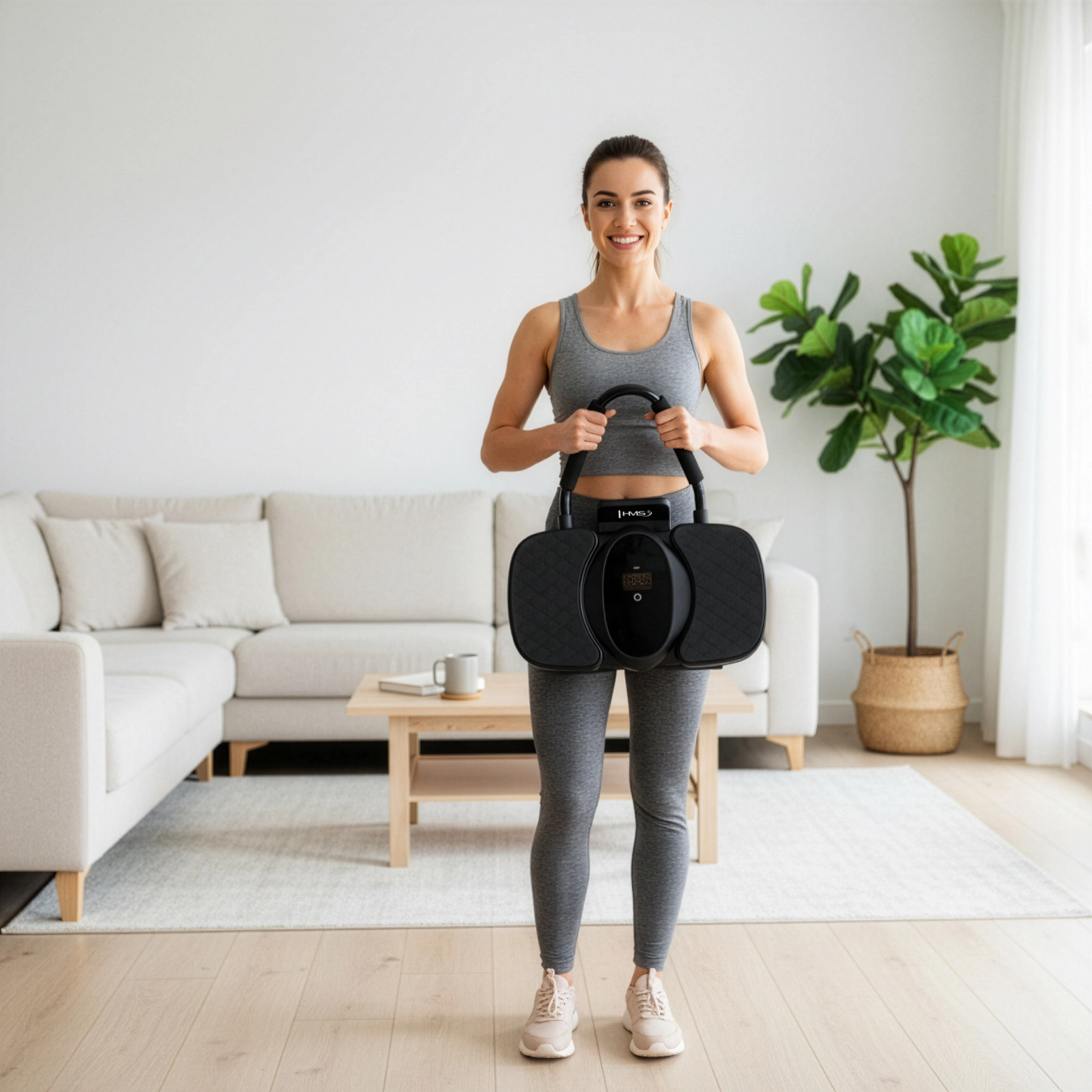 Pro komfortní trénink nechybí široké loketní opěrky a měkká podložka pod kolena. LCD displej přehledně ukazuje čas, kalorie a počet opakování, zatímco držák na telefon umožní sledovat tréninkové plány či videa. Díky rychlé zacvakávací montáži je připraven k použití během chvilky a USB‑C zajistí snadné dobíjení.