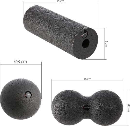 Ulevte přetíženým svalům a zrychlete regeneraci s univerzální sadou HMS pro automasáž. Malý míček (Ø 8 cm) přesně masíruje spoušťové body, dvojitý míček (peanut) efektivně uvolňuje hluboké svalové skupiny podél páteře, krku či hýždí a mini válec je ideální pro předloktí a chodidla. Set je vhodný pro domácí používání, do posilovny i na cestování.