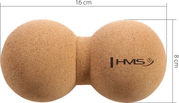 Korkový dvojitý masážní míč HMS je navržen pro přesnou automasáž a uvolnění ztuhlých svalů podél páteře, šíje a dalších obtížně dostupných partií. Dvě propojené koule vytvářejí ergonomický tvar „arachis“ (peanut), který stabilizuje tlak a šetří páteřní trny při masáži zad. Přírodní korek skvěle padne do ruky, neklouže a umožňuje kontrolovaný, hluboký tlak.