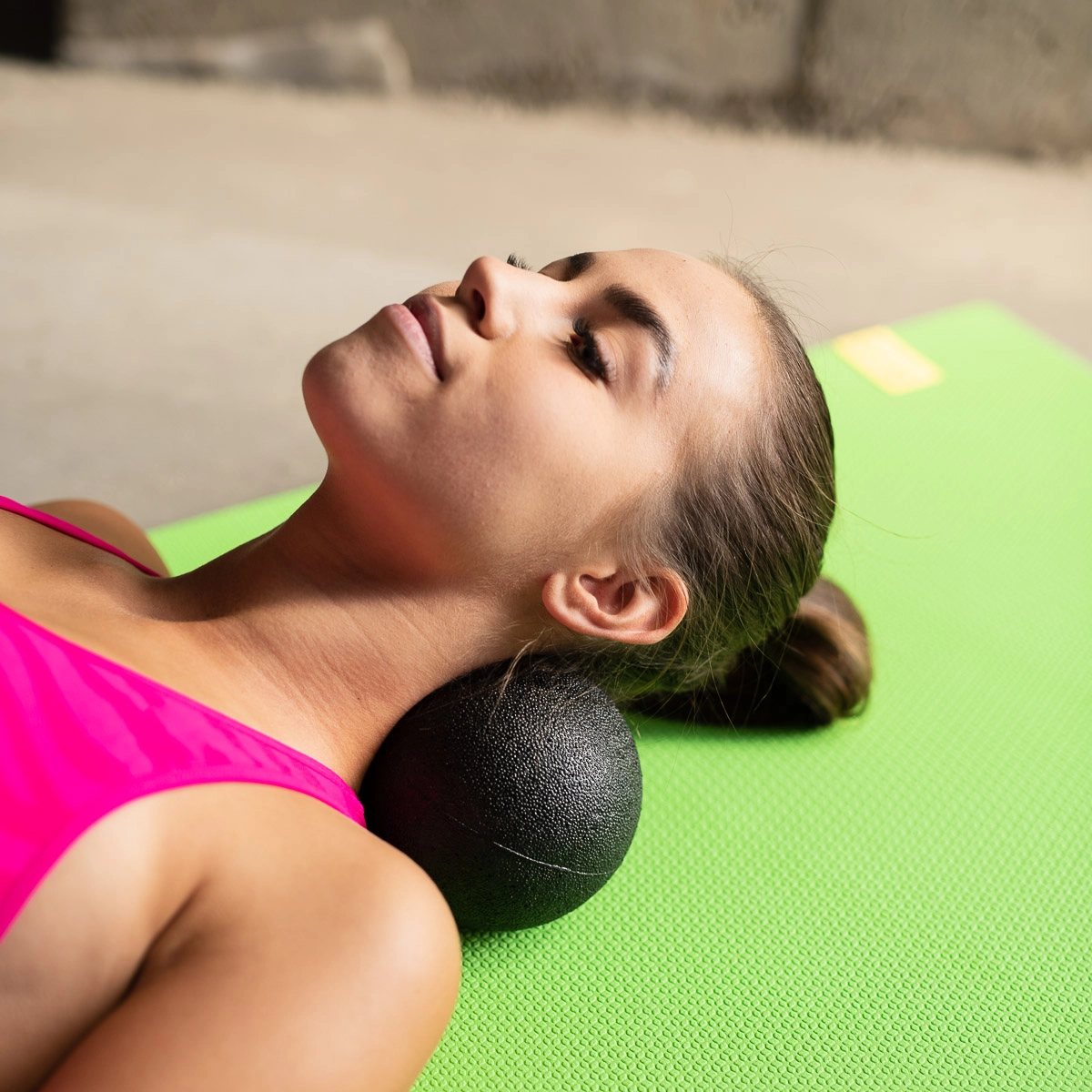 Umístěte míček pod záhlaví a jemným pohybem uvolněte svalové uzly. Ideální pro dlouhé sezení i po tréninku.