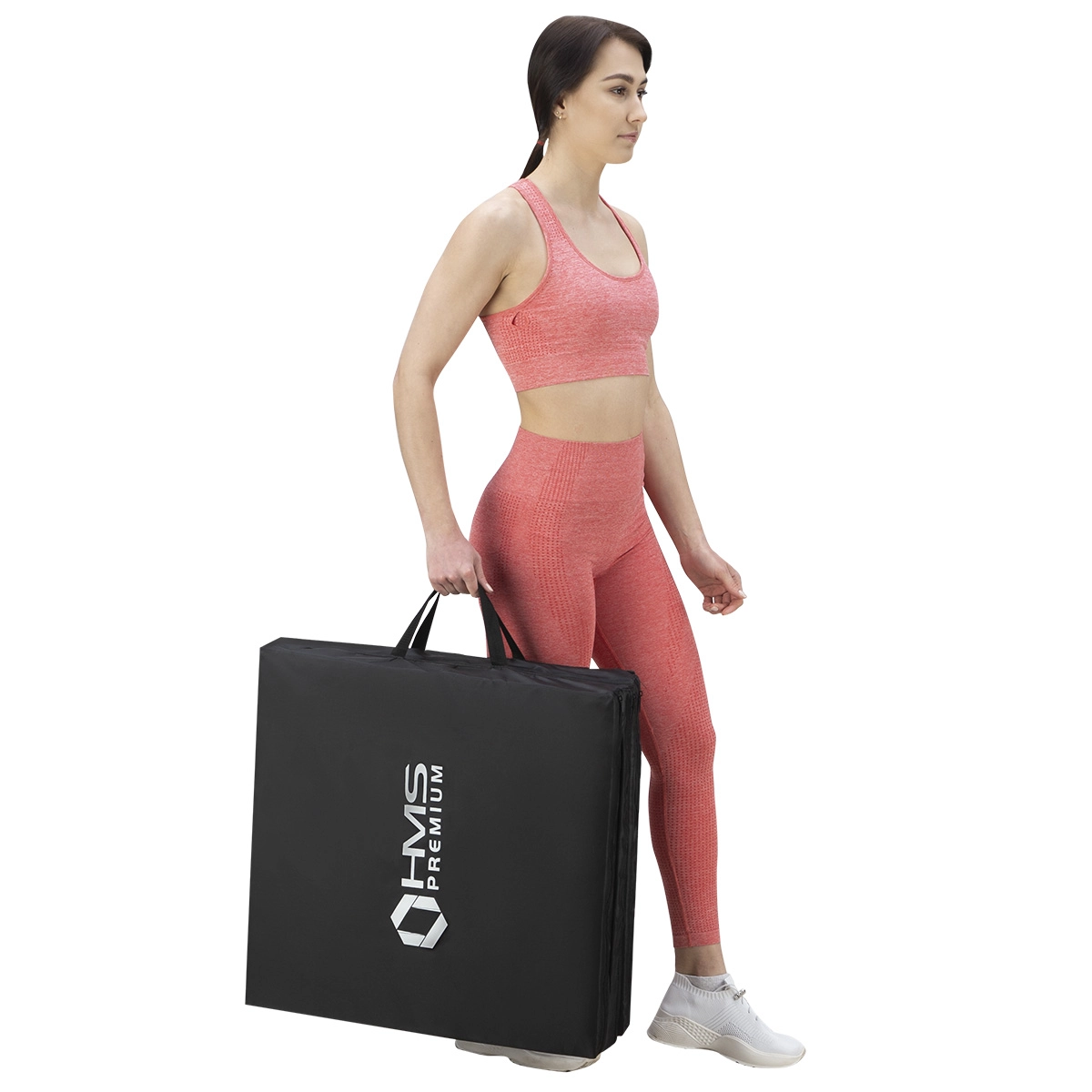 Tři pevné panely složíte během vteřin. Integrované úchyty umožní pohodlné přenášení do tělocvičny i na cesty.