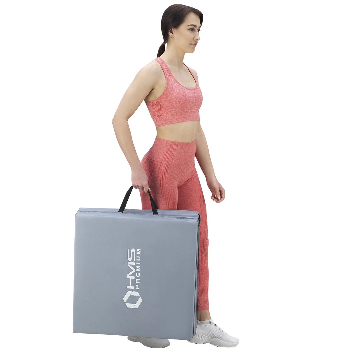 Díky skládací konstrukci ze tří pevných panelů se žíněnka během pár sekund rozloží i složí. Po složení vytváří kompaktní tvar, který šetří místo v bytě, tělocvičně i kufru auta. Integrované úchyty umožňují pohodlné přenášení, takže můžete trénovat kdekoli.