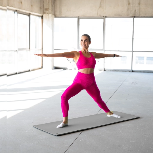 Texturovaný povrch a přilnavá spodní vrstva drží podložku na místě, aby byl váš pohyb jistý a bezpečný i při dynamickém tréninku.