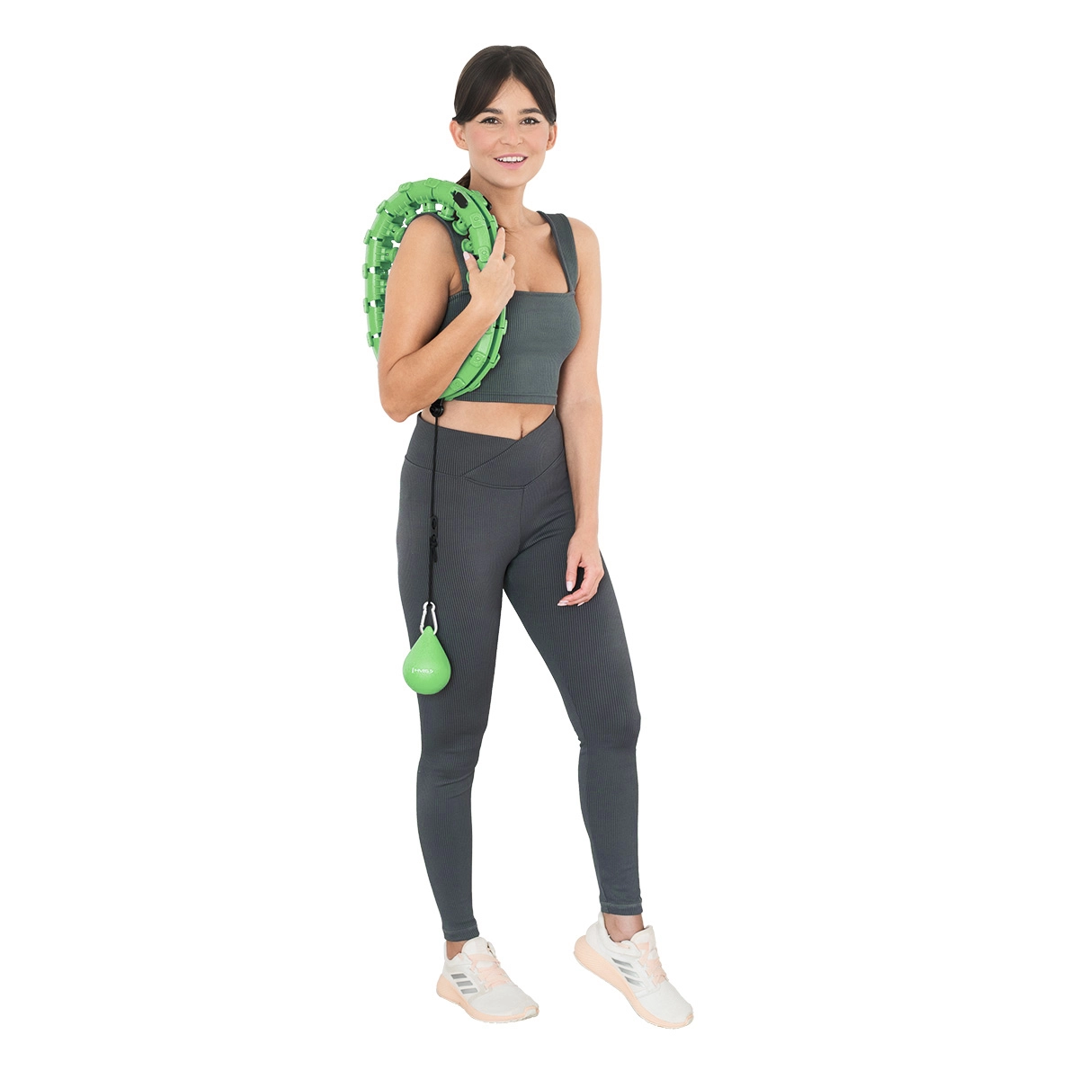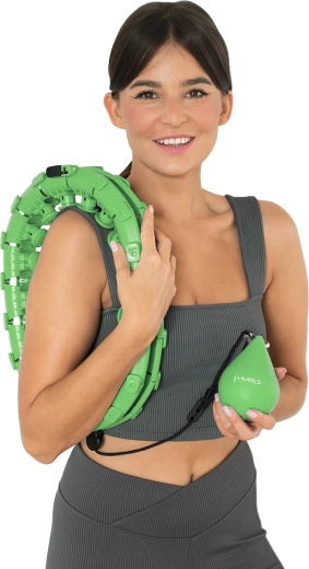 24 propojitelných segmentů vám umožní nastavit velikost přesně na váš pas (46–105 cm). Obruč drží stabilně a nepadá přes boky, takže se můžete soustředit jen na pohyb.