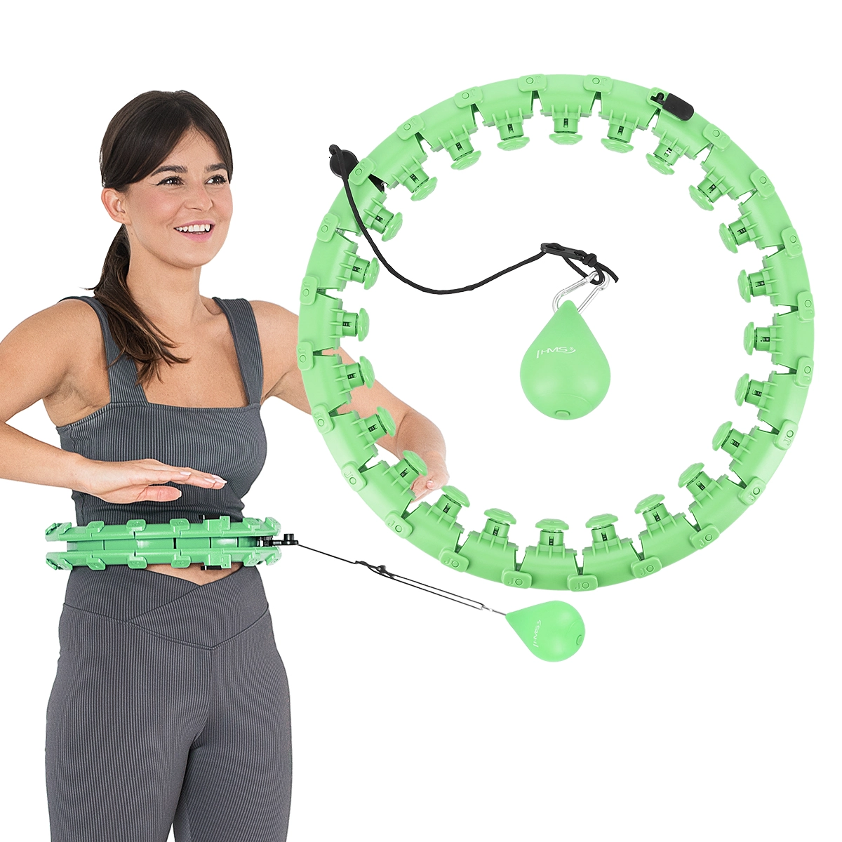 HMS HHW01 je moderní masážní hula hoop, který kombinuje cílený trénink pasu s příjemnou masáží. 24 propojitelných dílů umožňuje nastavit ideální velikost pro obvod pasu 46–105 cm. Vnitřní masážní kloboučky s pružinami tlumí vibrace a šetrně stimulují oblast břicha a boků, zatímco kotva na kolečkách s kuličkovými ložisky zajišťuje plynulý a tichý pohyb.
