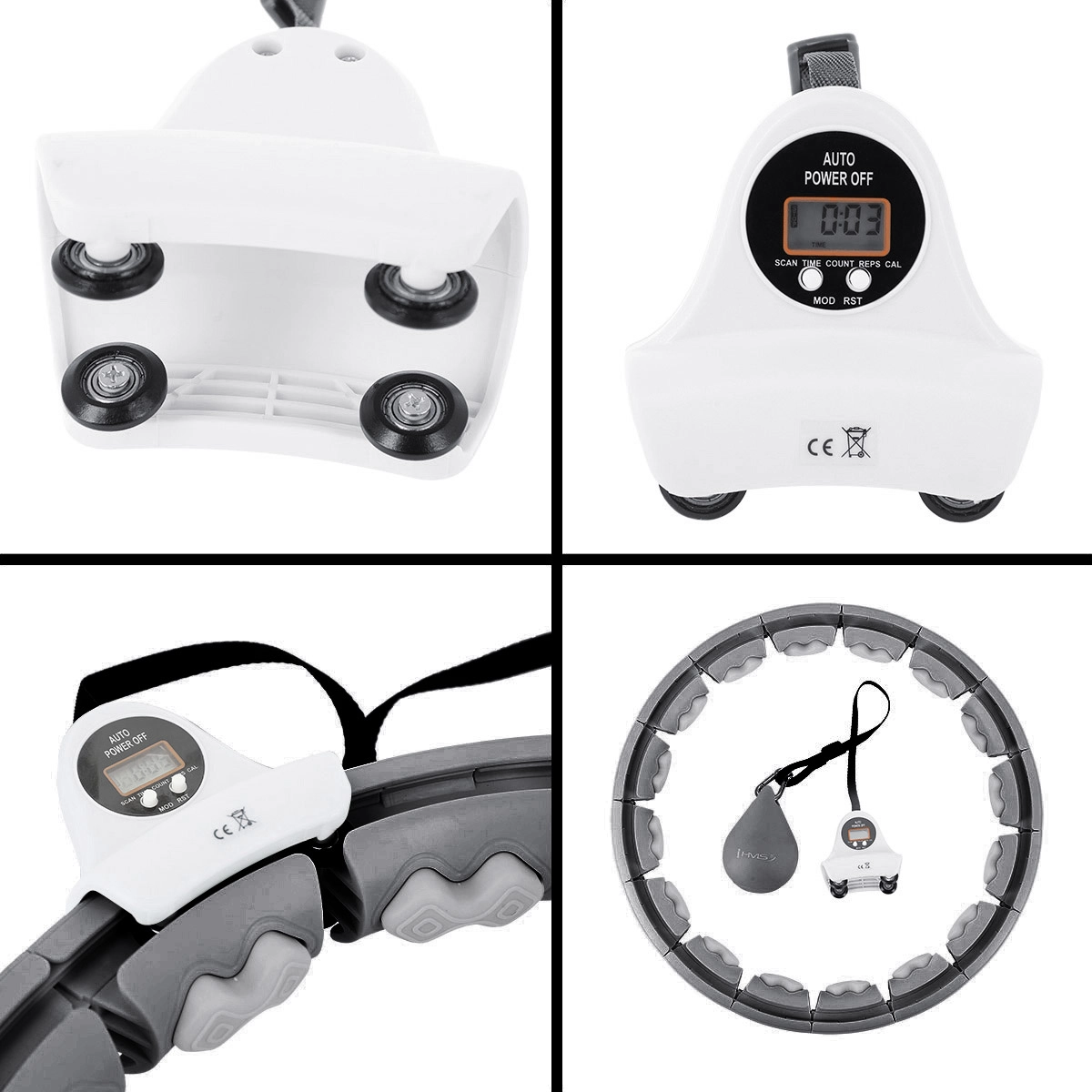 Integrovaný modul s displejem počítá obkroužení a pomáhá sledovat průběh cvičení. Ložisková kolečka zajišťují plynulý, tichý chod.