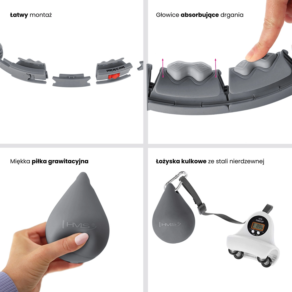 Hula hoop HMS je chytrá obruč složená z až 16 zacvakávacích dílů, které snadno přizpůsobíte vašemu obvodu pasu. Integrované masážní výstupky s pružinami tlumí vibrace a příjemně masírují oblast břicha a boků, takže trénink je komfortní i při delším cvičení. Obruč má počítadlo otáček, které sleduje průběh tréninku a pomáhá držet tempo.