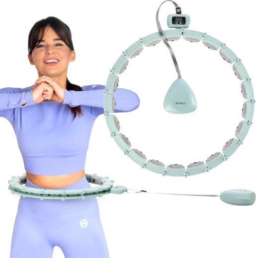 HMS HHM14 je moderní masážní hula hoop pro efektivní domácí trénink. Skládá se z 21 zacvakávacích dílů, takže si snadno upravíte obvod pro pas 76–113 cm. Uvnitř obruče je kolejnice s kotvou na kuličkových ložiscích, ke které je připojeno závaží 380 g na délkově nastavitelném provázku (16–32 cm). Delší provázek = vyšší odstředivá síla a intenzivnější cvičení. Vnitřní stranu tvoří magnetické masážní výstupky, jež zpříjemňují trénink a podporují metabolismus.
