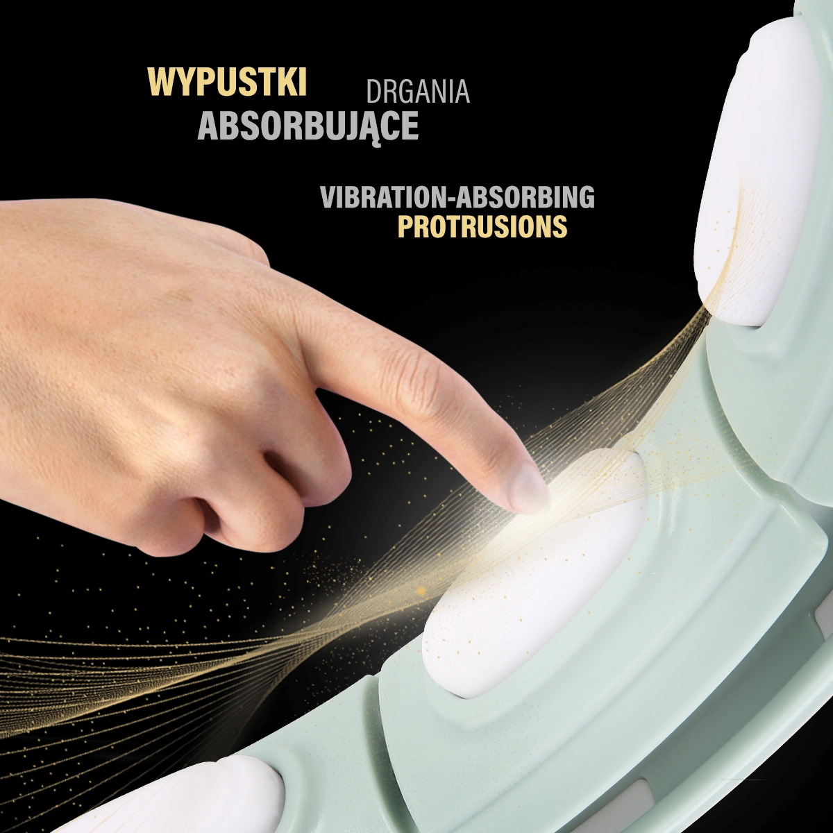 Obruč HMS je tvořena 16 propojitelnými díly, které snadno upravíte dle obvodu pasu. Vnitřní masážní výstupky s magnety příjemně stimulují oblast břicha a boků, podporují prokrvení a mohou napomoci k redukování tukové tkáně. Rotující závaží o hmotnosti 400 g na nastavitelném provázku (20–38 cm) zvyšuje intenzitu – čím delší provázek, tím vyšší odstředivá síla a náročnost cvičení.