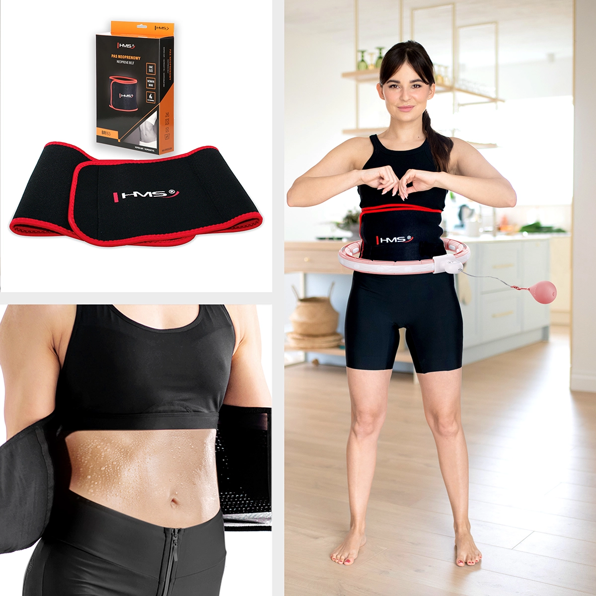 Součástí balení je neoprenový pás HMS BR163, který se díky pružnému materiálu a zapínání na suchý zip dokonale přizpůsobí postavě. Udržuje teplo v oblasti středu těla, podporuje pocení a můžete jej nosit při cvičení i během dne. Vnitřní síťovina napomáhá odvodu potu a cirkulaci vzduchu pro větší pohodlí.