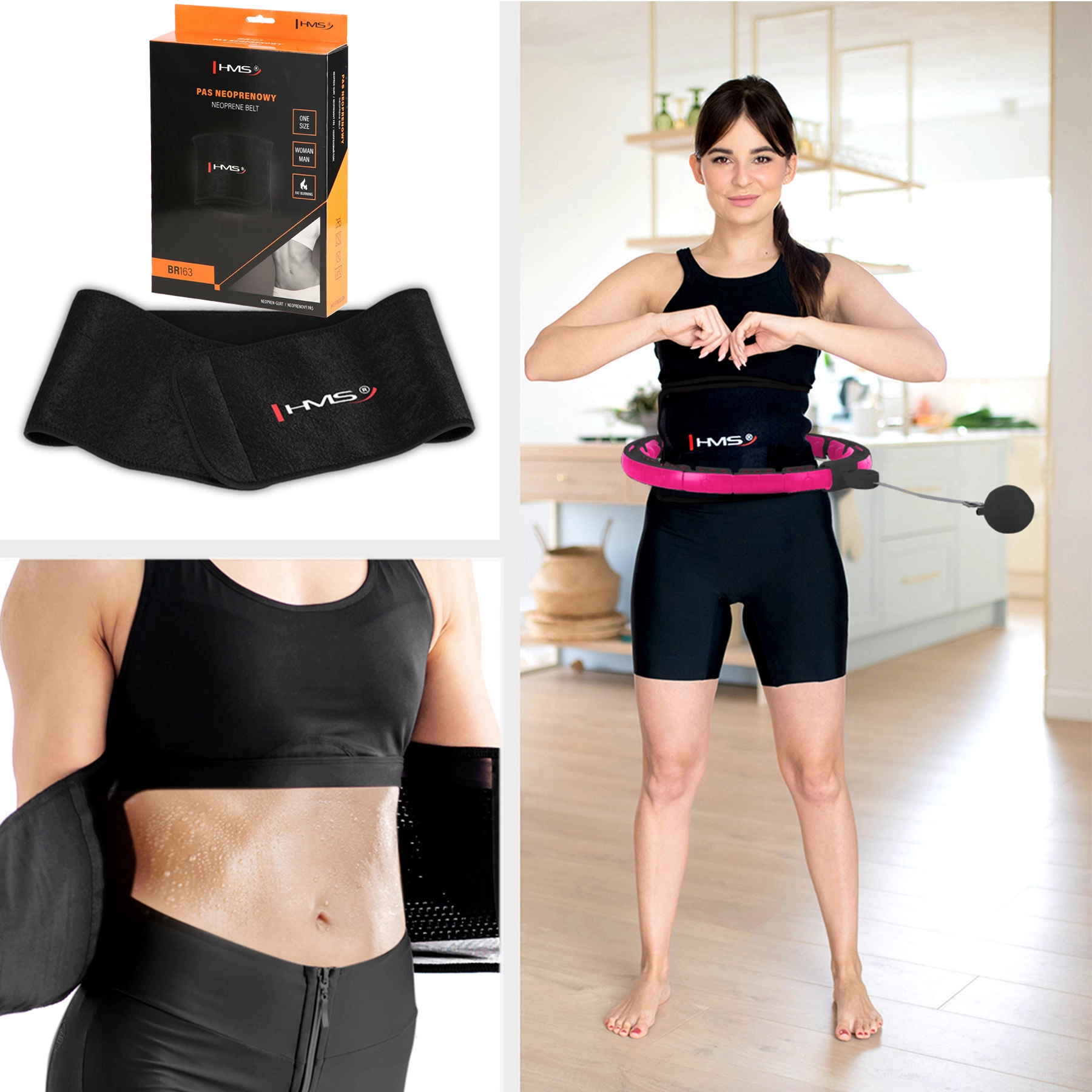 Součástí balení je neoprenový zeštíhlující pás HMS BR163, který zvyšuje teplotu v oblasti břicha, podporuje pocení a pomáhá s tvarováním pasu. Díky pružnému materiálu a zapínání na suchý zip skvěle sedí mužům i ženám při cvičení i během dne.
