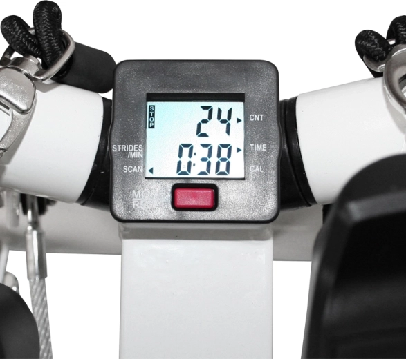 Integrovaný LCD počítač přehledně ukazuje čas, kroky za minutu, celkový počet kroků a spálené kalorie. Nastavitelná výška kroku umožňuje přizpůsobit intenzitu cvičení. Stabilní ocelová konstrukce, protiskluzové nášlapy a hydraulické písty zajišťují plynulý a tichý chod – ideální do bytu.