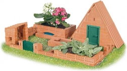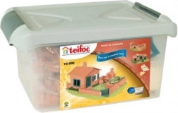 Stavebnice TEIFOC Domek Raul je ideální pro malé stavitele od 6 let. Děti si vyzkouší autentický postup – rozmíchají maltu, nanesou ji na cihličky a krok za krokem vybudují vlastní domek se zahrádkou. Po dokončení stačí konstrukci rozmočit ve vodě, cihličky osušit a stavět znovu dle fantazie.