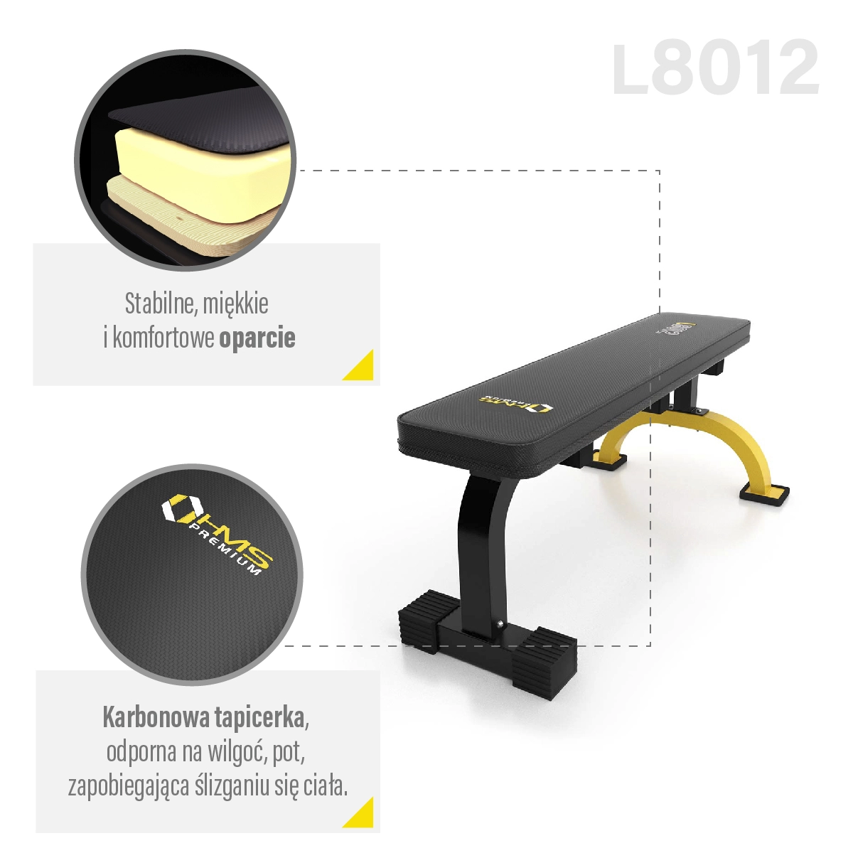 Rovná lavice HMS Premium L8012 je univerzální lavice pro domácí trénink, vhodná na cvičení s činkami, osami i s vlastní vahou. Nabízí robustní konstrukci s nosností 200 kg, pohodlné silné polstrování a rozšířený stabilizátor pro maximální stabilitu i při těžkých sériích.