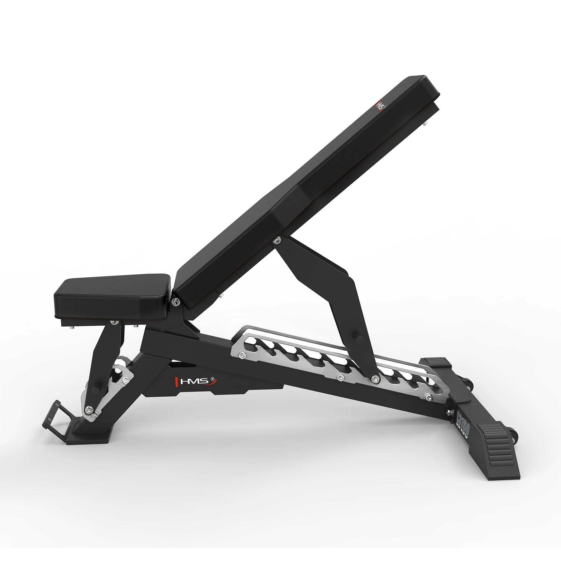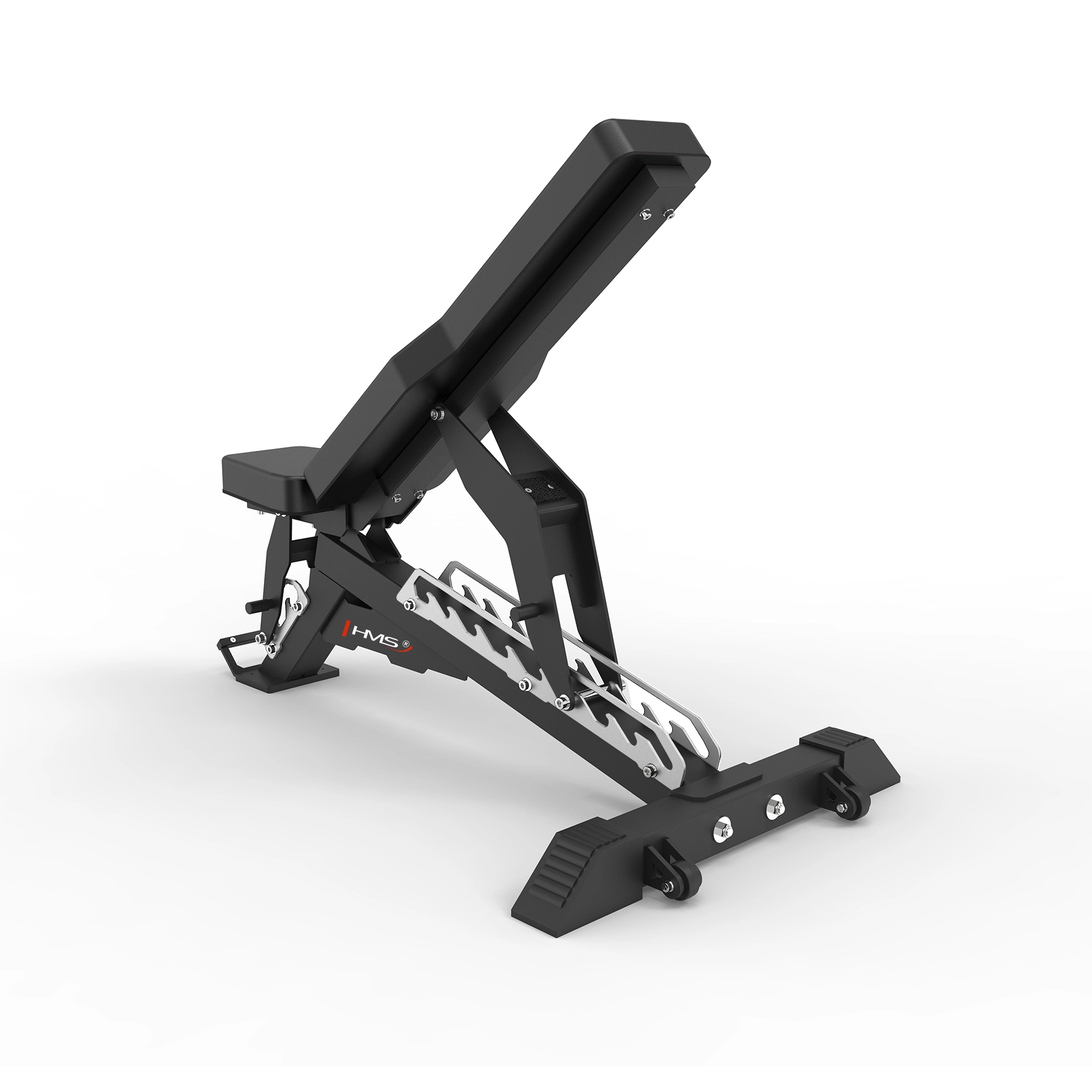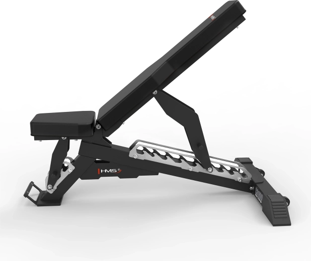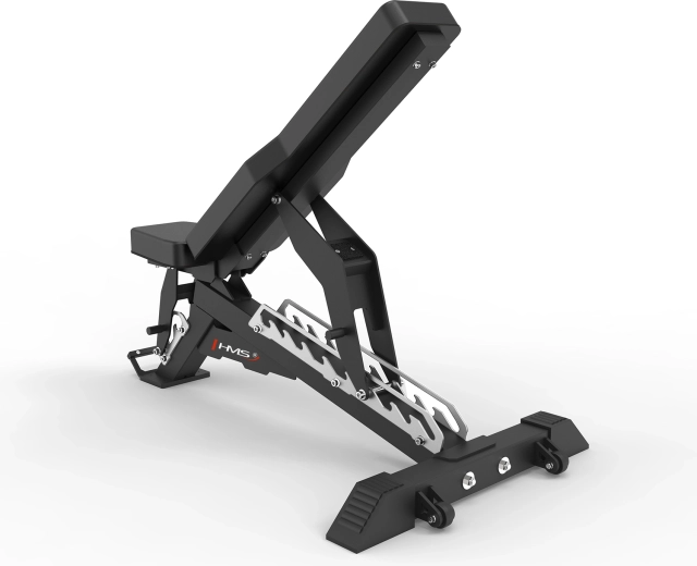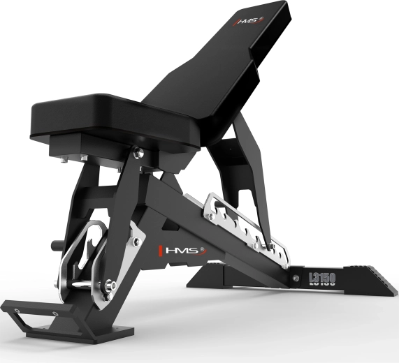 HMS L3150 je prémiová variabilní lavice navržená pro komerční i náročné domácí využití. Díky přesnému polohování opěradla (0–90°) a sedáku (0–30°) zvládne rozsah cviků od tlaků na rovné, šikmé i negativní lavici až po jednoručky a sed-press. Chromované, laserem vyřezávané zuby umožňují jisté a rychlé aretace, zatímco dvojitá vzpěra rámu přidává maximální tuhost a bezpečnost.