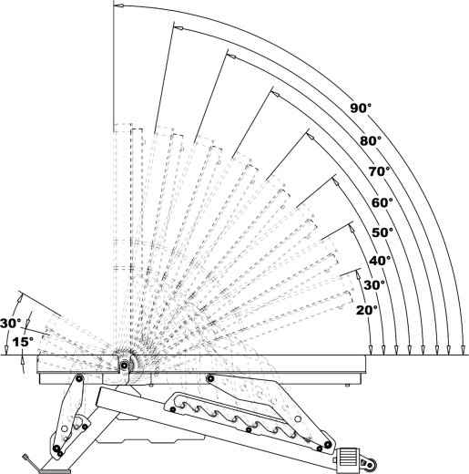 Opěradlo v 9 úhlech (0–90°) a sedák ve 3 úhlech (0–30°) umožní optimální nastavení pro tlaky, přítahy i jednoručky. Rychlé, jisté a opakovatelné aretace.