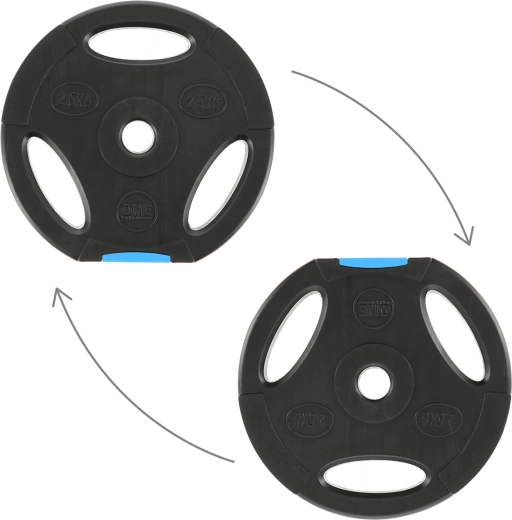- Pohodlná manipulace: kotouče s úchopy a barevným značením hmotností.