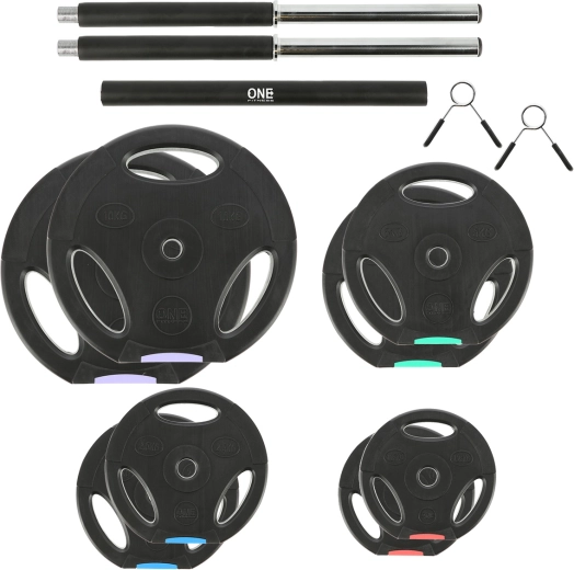 Sada obsahuje kotouče 1,25–10 kg, takže si jednoduše zvolíte optimální odpor pro různá cvičení a postupné zlepšování výkonu.