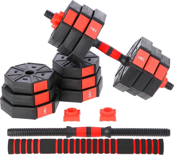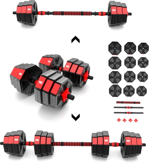 Sada HMS SGC20 kombinuje praktičnost a variabilitu pro efektivní trénink celého těla. Díky spojovacímu dílu snadno přeměníte dvě jednoruční činky na jednu obouruční tyč. Zátěže se nasazují na závitové trny a bezpečně fixují hvězdicovými maticemi, takže se můžete soustředit na výkon.
