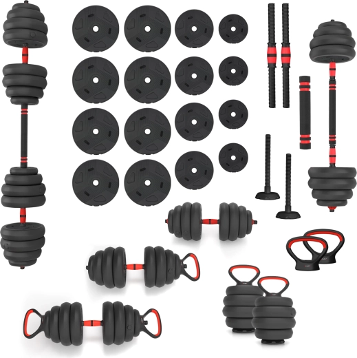 Univerzální sada činek HMS 6v1 s celkovou hmotností 40 kg přináší flexibilní domácí trénink pro celé tělo. Z jedné sady snadno sestavíte jednoruční i obouruční činku, kettlebell, činku s paralelním či bočním úchopem a také podpěry na kliky. Díky kombinaci kotoučů a příslušenství rychle měníte zátěž a typ úchopu pro maximální variabilitu cvičení.