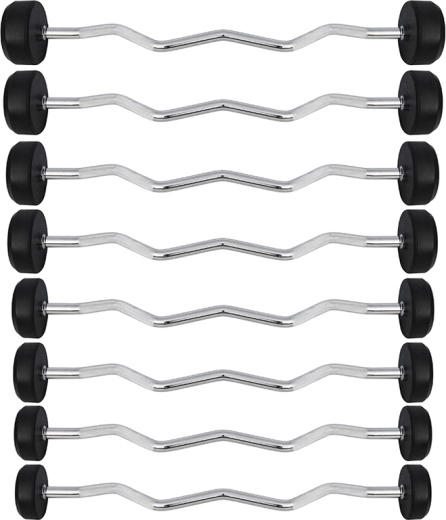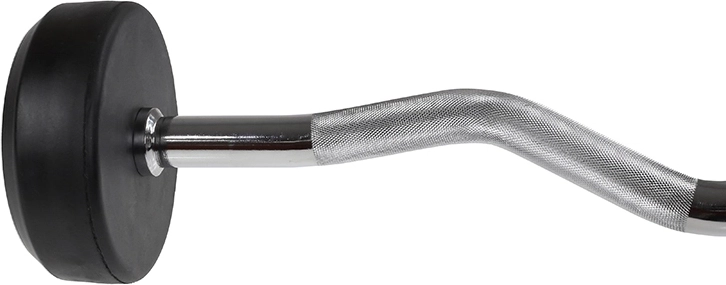 Lomený tvar snižuje napětí v zápěstí a umožňuje přirozený úchop při bicepsových zdvizích i tricepsových extenzích.