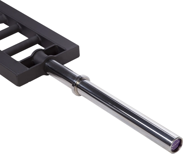 Robustní konstrukce z kalené oceli a kvalitní zpracování zvládne maximální zatížení 450 kg. Vroubkované rukojeti (průměr 30 mm) poskytují jistotu při těžkých sériích, zatímco standardní olympijské trny o průměru 50 mm s délkou 38 cm na každé straně umožňují pohodlné nakládání kotoučů. Osa o celkové délce 213 cm a hmotnosti 25 kg je ideální volbou do komerčních i domácích posiloven.