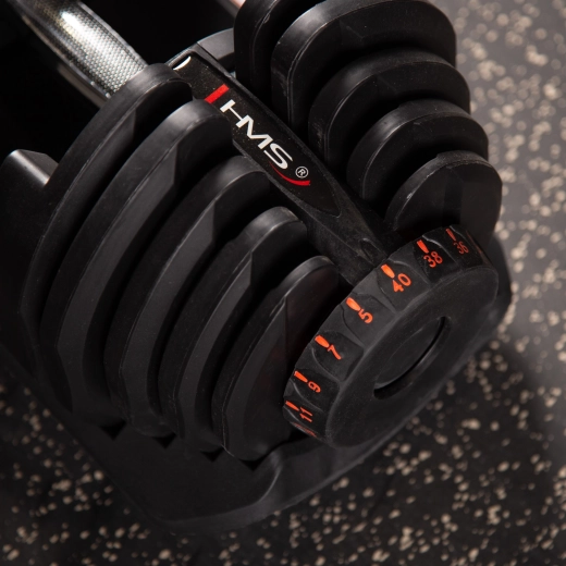 HMS SR80 je chytré řešení pro silový trénink bez kompromisů. Inovativní systém uchycení kotoučů umožňuje během vteřin nastavit požadovanou hmotnost – stačí činku odložit do stojanu, pootočit voličem a pokračovat v sérii. Jedna činka tak nahradí celou sadu díky rozsahu 2,8–37,26 kg.