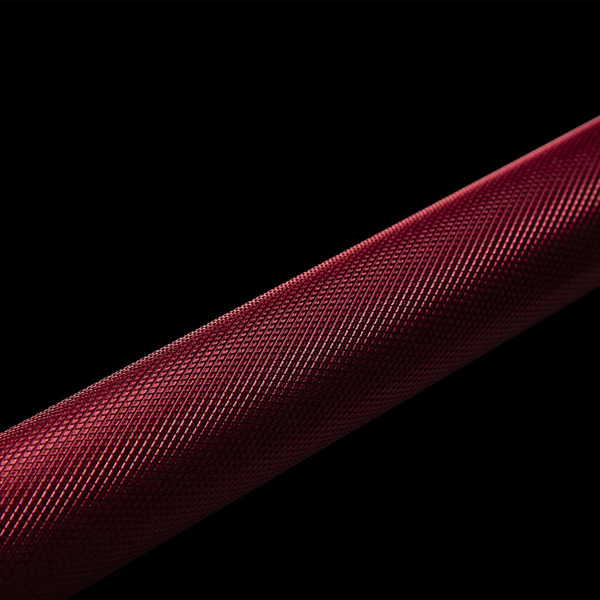 Osa má vroubkovanou (knurlovanou) rukojeť pro jistý úchop bez prokluzování a standardní 50 mm nakládací trny pro kompatibilitu s olympijskými kotouči. Praktická délka a vyvážení usnadňují přesnou techniku a bezpečný trénink.