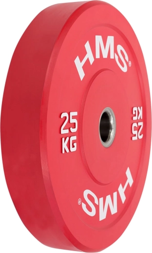 Bumper kotouč HMS 25 kg je navržen pro intenzivní trénink s možností bezpečného odhozu. Robustní směs pryže SBR a NR snižuje náraz, chrání podlahu i vybavení a prodlužuje životnost kotouče. Barevné provedení podle závodních standardů umožňuje rychlou orientaci na ose.