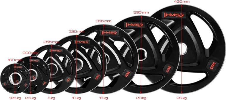 Olympijský kotouč HMS 1,25 kg je spolehlivou volbou pro domácí i komerční posilovny. Ocelové jádro potažené tvrdou gumou tlumí nárazy, snižuje hlučnost a chrání povrchy před poškozením. Standardizovaný otvor 50/51 mm zajišťuje kompatibilitu s většinou olympijských os a nakládacích trnů.