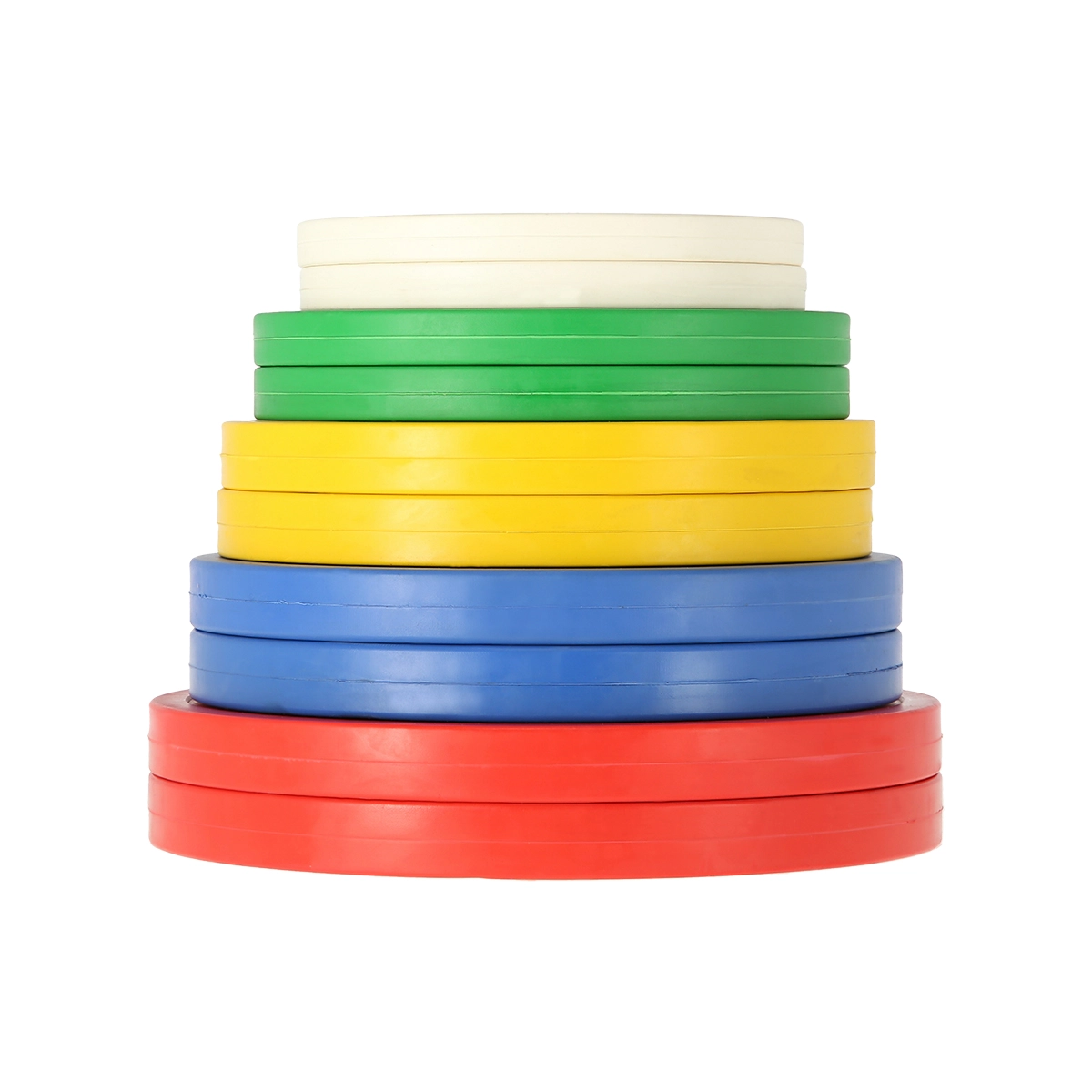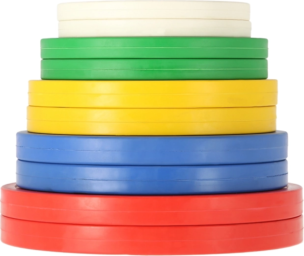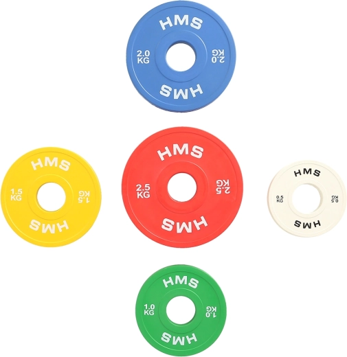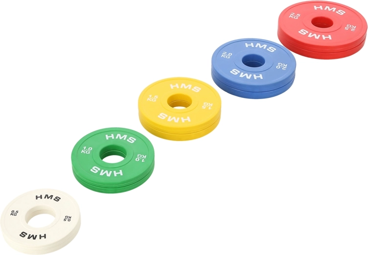 Kompletní sada frakčních kotoučů HMS pro přesné navyšování zátěže od 0,5 do 2,5 kg. Díky barevnému rozlišení a ocelovému jádru s gumovým povrchem umožňuje rychlou orientaci, jemné přírůstky hmotnosti a bezpečné, tiché odkládání na jakoukoli olympijskou osu (průměr otvoru 51 mm).