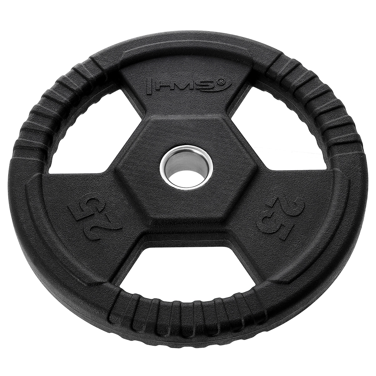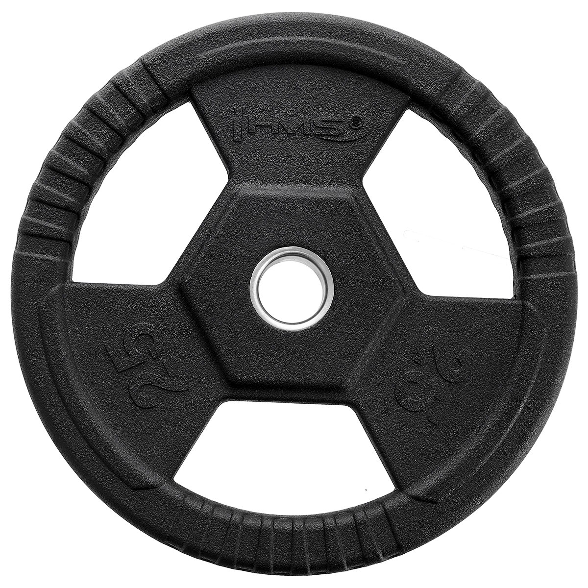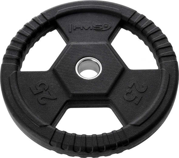 Olympijský kotouč 25 kg HMS TOH25 je spolehlivá volba pro domácí posilovnu i komerční fitness. Díky ocelovému jádru s odolným pogumováním je kotouč tichý při dopadu a méně náchylný k poškození. Ergonomická tříbodová madla (tri‑grip) usnadňují manipulaci a umožňují i samostatné cviky s kotoučem.